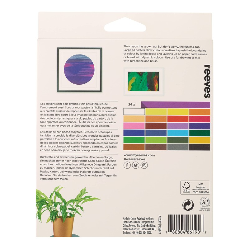 Reeves Oil Pastels - Highly Pigmented Pastel Colours - Painting Sticks, Oil-Based Crayons - Art Supplies for Adults, Kids, Artists, & Students - Great For Sketching, Shading, & Mixing - Set of 24
