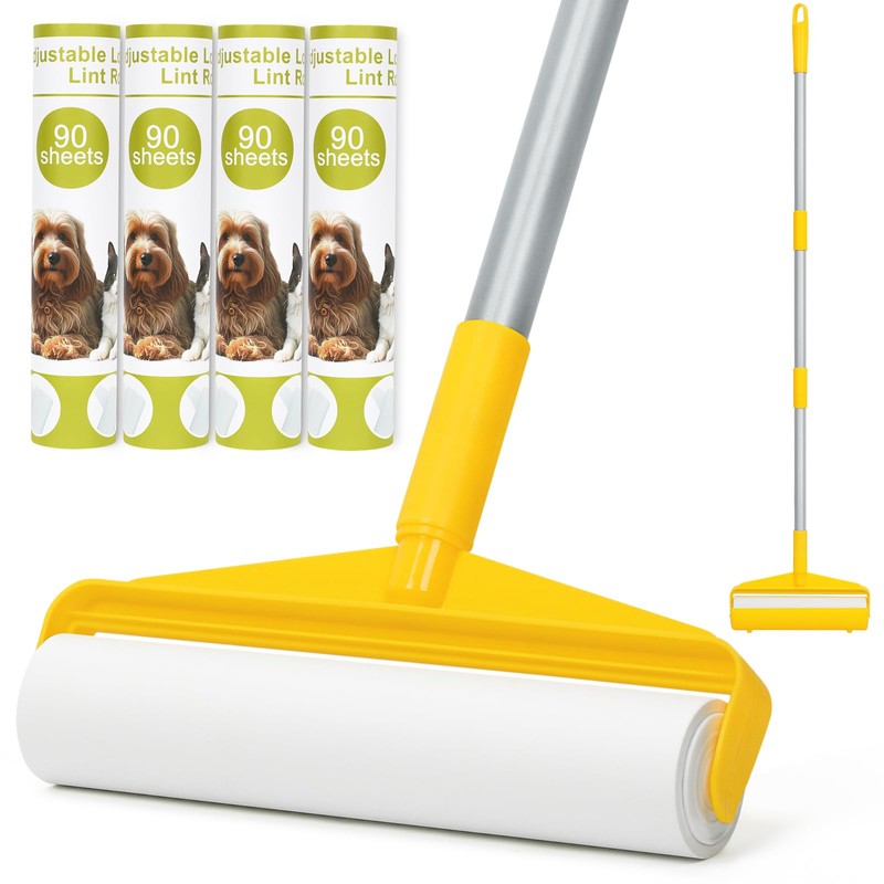 REEWII Large Lint Rollers for Pet Hair Extra Stick,9.45" Giant Lint Roller Refill 360 Sheets Total,45" Long Handle Sticky Mop,for Cleaning Floors, Carpets, Cars, Clothing and pet Hair