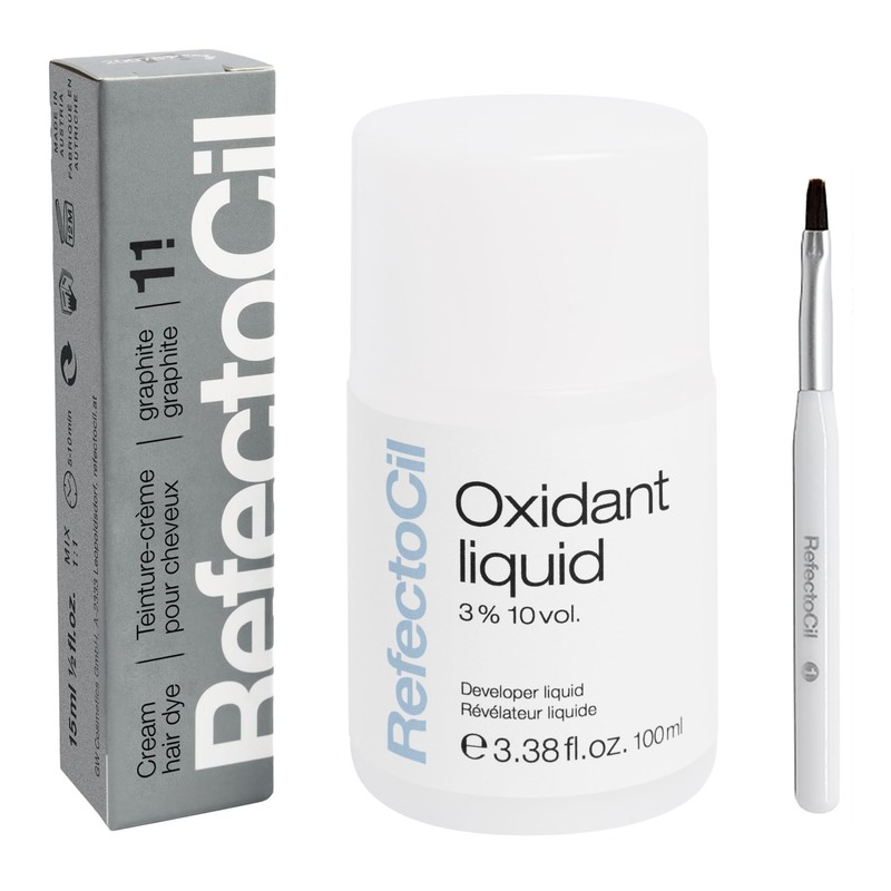 RefectoCil Graphite (#1.1) Hair Tinting Kit Includes Eyebrow Tint + Liquid Oxidant 3% + Application Set & Mixing Dish