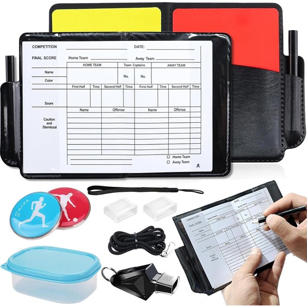 - Portable design: football referee set is slim, compact and lightweight, with a side sleeve for storing pencils, football referee set is very easy to use on the go. On the outside of the game report sheet, the red and yellow cards can be stored, so that they are easily accessible