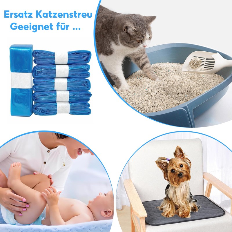 1. Our cat litter bags are easy to install. Pull a little of the film, insert the bin bag into the box (without original cassette), tie a knot at the bottom. Then open the barrel lid and funnel, place the cartridge on it and press the refill down. Easy to fill, clean refills - hassle-free litter care