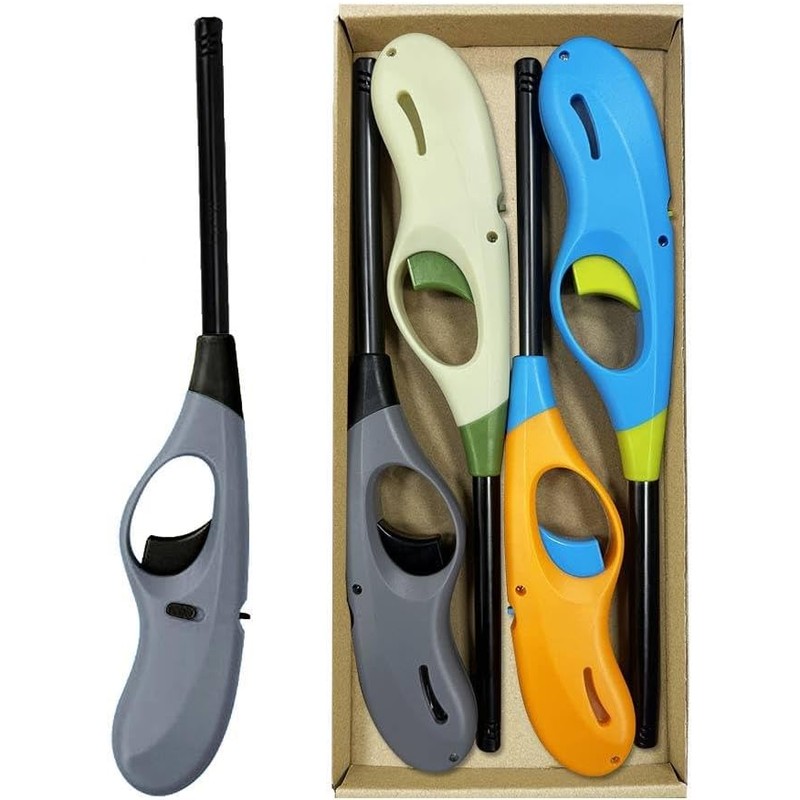 Refillable Long Flame Lighter Set – 4-Pack Butane Utility Lighters for BBQ, Candles & More (Butane Not Included)