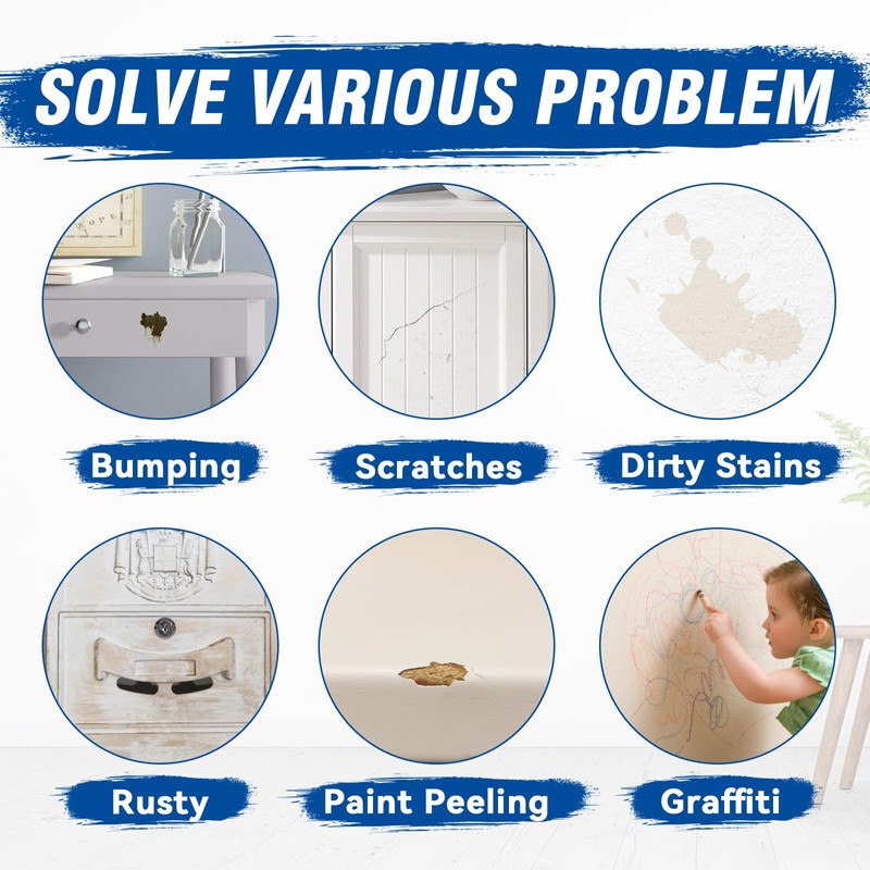 - Versatile Applications: Suitable for various surfaces and environments, whether it's wall, rock, wood, ceramic, or various furniture. If you want to refresh furniture or conceal scuffs on walls, our paint brushes for walls provide long-lasting application, bringing scratches back to life. Additionally, the touch up pens with syringes can fill any latex paint