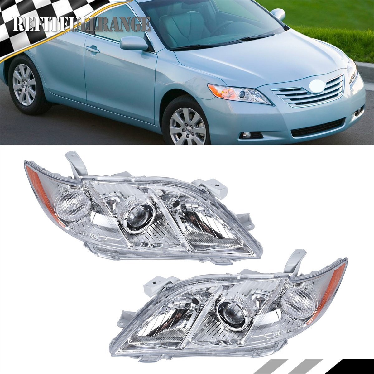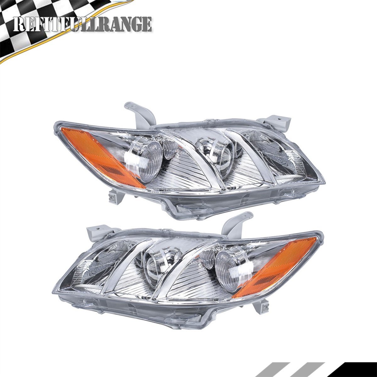 refitfullrange For 2007-2009 Toyota Camry L LE SE Left+Right Headlights Headlamp Halogen Chrome