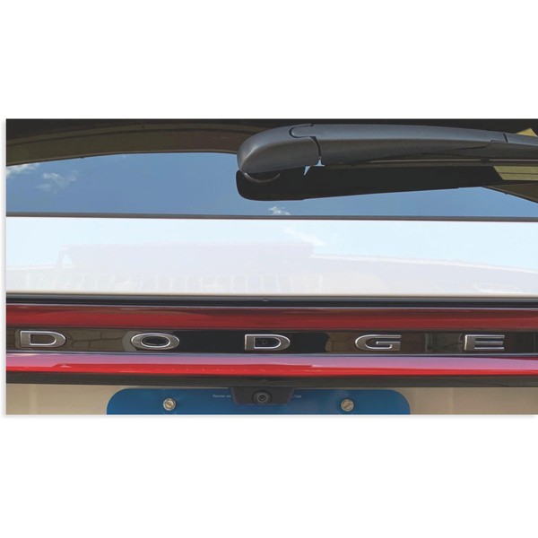 • Sticks to the face of the existing, factory DODGE emblem on the liftgate. The outer edges remain exposed.