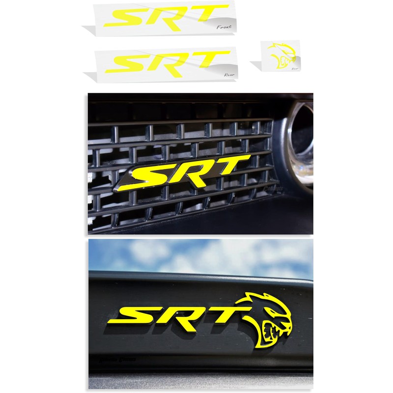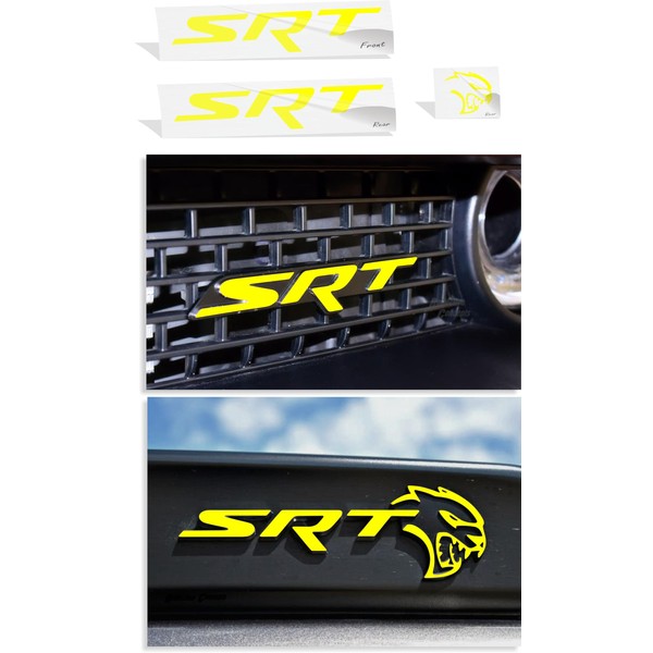 - Sticks onto the front face of the existing SRT emblem on the grille and the existing SRT w/Hellcat on the spoiler