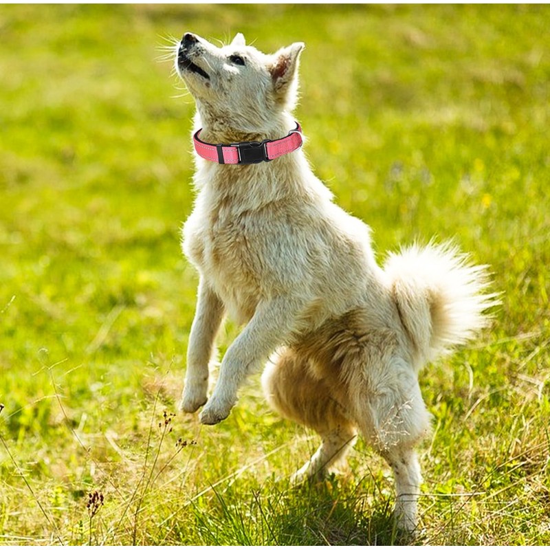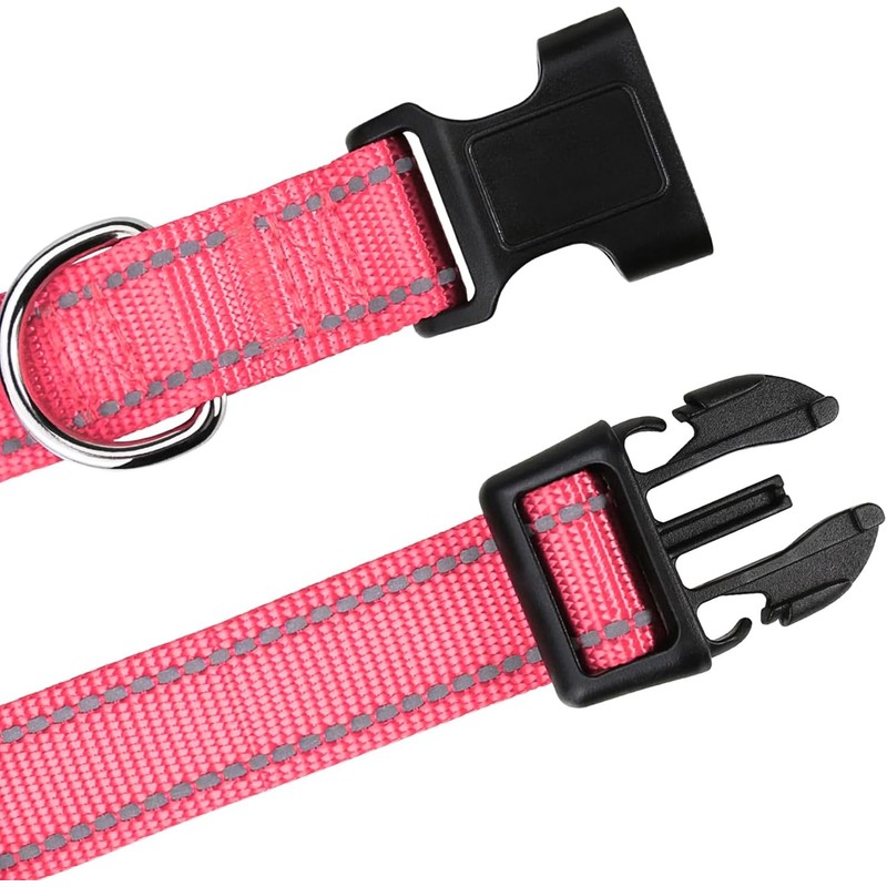 Reflective Dog Collar Nylon Collar Adjustable Pet Collar with Quick Release Buckle Soft Neoprene Padded for Small Medium Dog Pet (Pink)