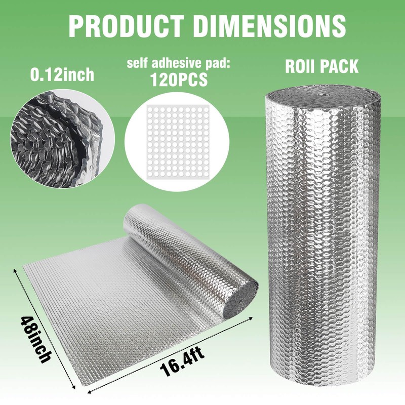 - 【Efficient Heat Insulation】It adopts high-quality aluminum foil layer and bubble film composite design, effectively reflecting more than 97% of thermal radiation, summer insulation, winter insulation, suitable for roofs, garages, pipes and other scenes, reducing air conditioning energy consumption.