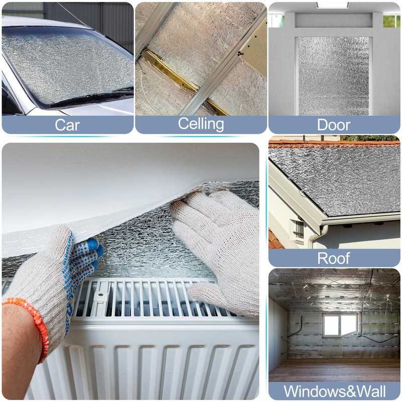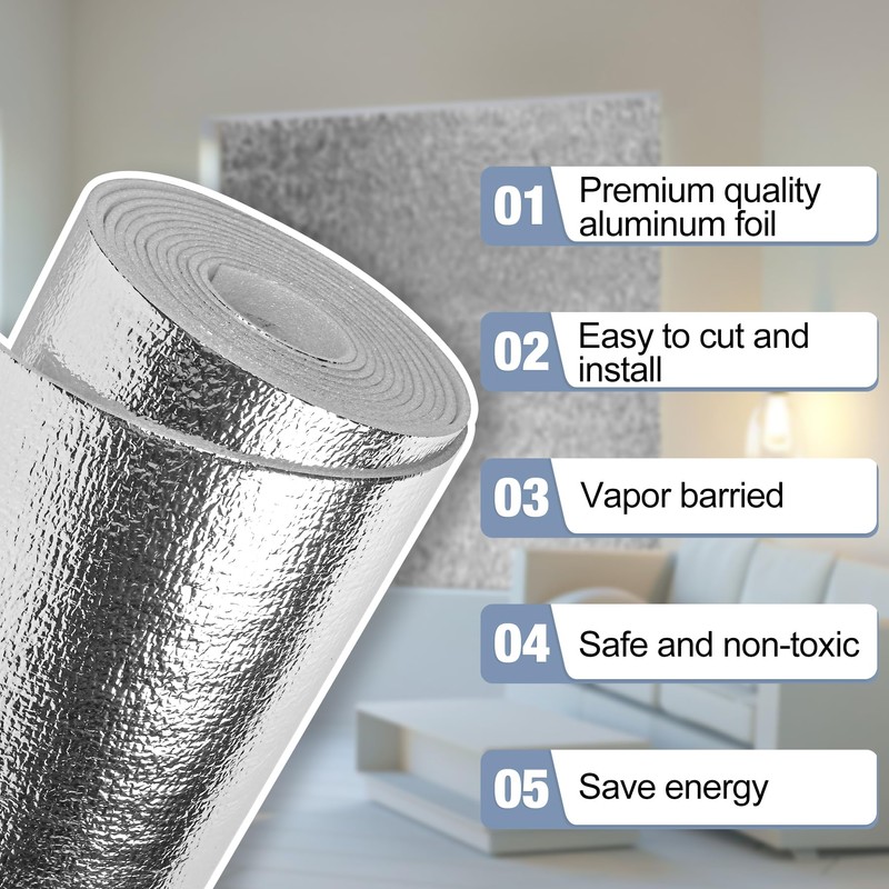 - 【Premium Quality】3mm closed cell polyethylene foam, covered with high reflectance aluminum foil, effectively reflects 95% of radiant energy, perfect RADIANT BARRIER. The surface design help to keep your room cooler in the summer and warmer in the winter