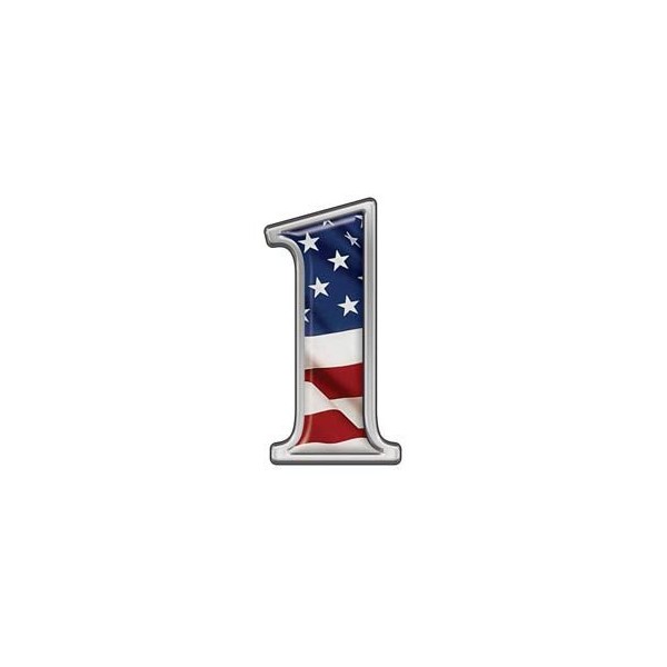 Reflective Number 1 with Flag - 2" h - REFLECTIVE