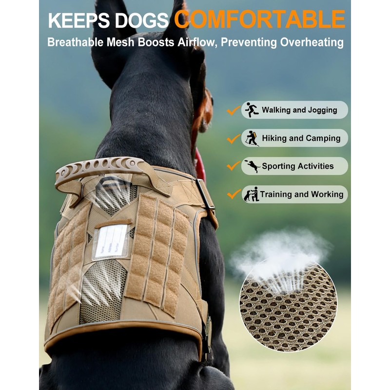 This tactical dog harness is tailored for dogs who love outdoor adventures.