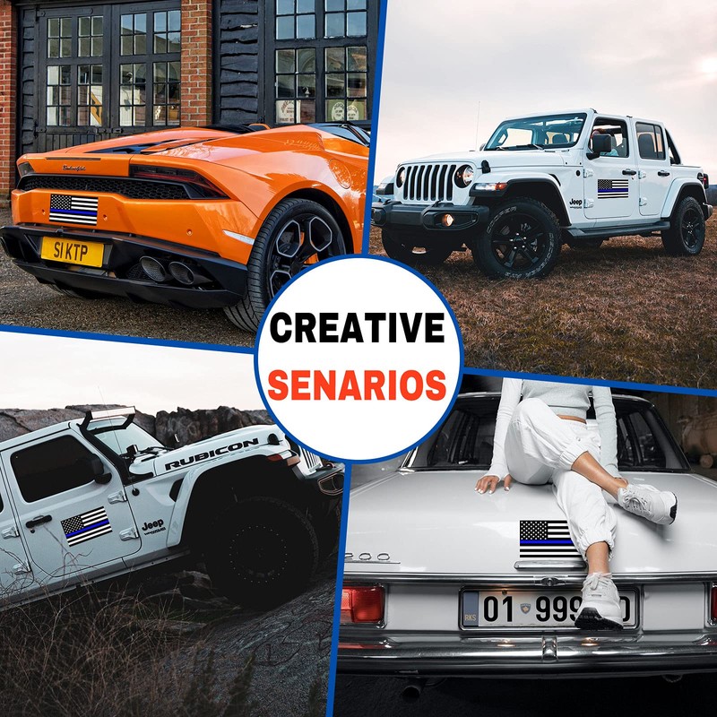 Reflective US Flag Decal Packs with Thin Blue Line for Cars & Trucks, 5 x 3 inch American USA Flag Decal Sticker Honoring Police Law Enforcement Vinyl Window Bumper Tape (5-Pack)
