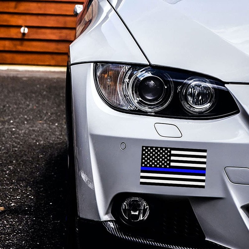 VINYL Decal, Reflective, Ultra high Quality. The blue center line represents police, the top black stripe represents the public while the bottom represents crime. Display these decals to show the support that law enforcement officers deserve.