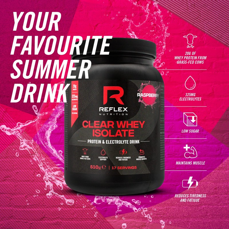 Reflex Nutrition Clear Whey Isolate | Whey Isolate Protein Powder | 20g Protein | 510g | Raspberry