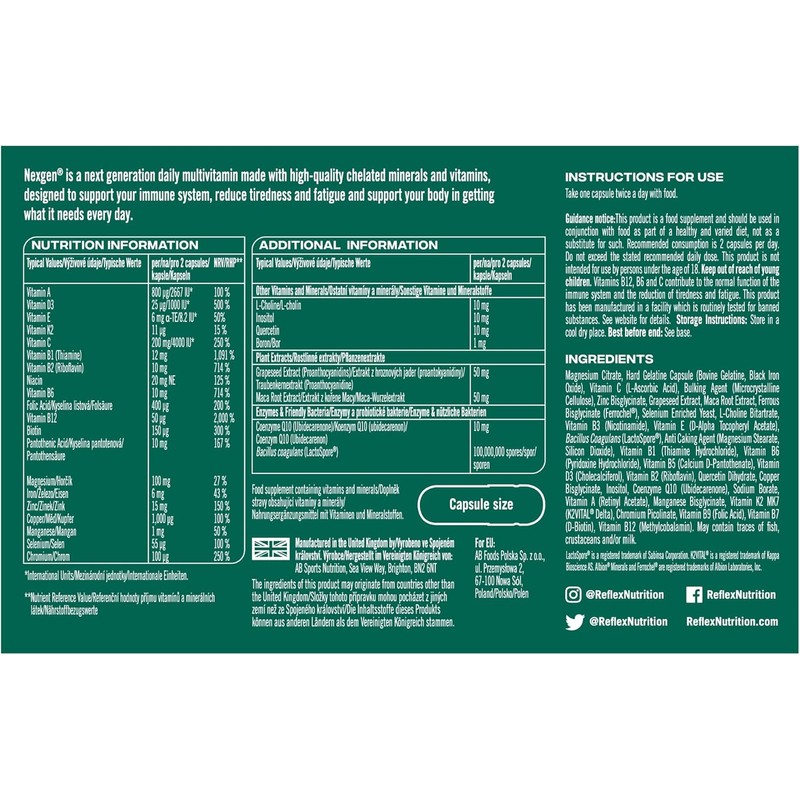 Reflex Nutrition Nexgen® Multivitamins & Minerals – 60 Capsules | Daily Immune Support Formula with Vitamin D, C, Zinc & Magnesium | Reduces Tiredness & Fatigue | High-Quality Multi for Energy & Wellness
