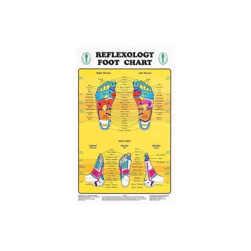 Reflexology Foot Chart - Reflexology Zones Marked. 1 Laminated Chart 8" x 11"