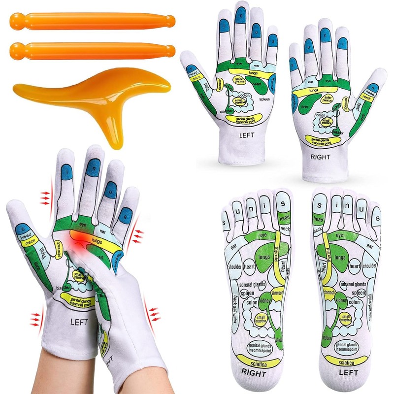 - 【Reflexology Kit】: You'll get a great body massage while giving your body a boost with our acupressure reflexology gloves and socks set, which are inspired by traditional Chinese massage methods.