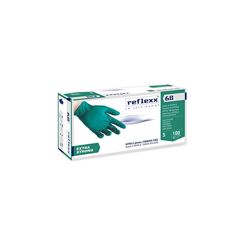 Reflexx R68/M Powder free nitrile gloves gr 6.0, Size Medium, Green (Pack of 100)