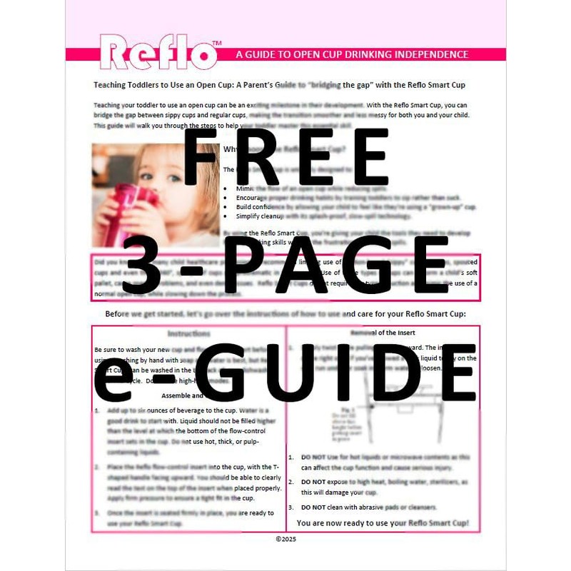 Reflo BUNDLE: Reflo Smart Cup (Clear 1-Pack) Open Training Cup, Toddler Cup, 360 Control-Flow, AND free training and use e-guide via QR code on packaging.