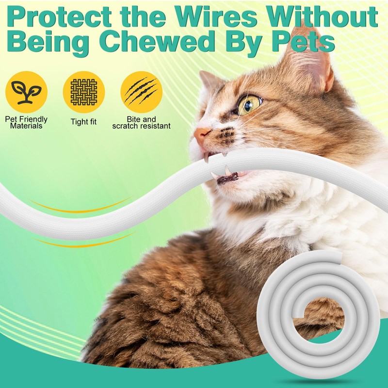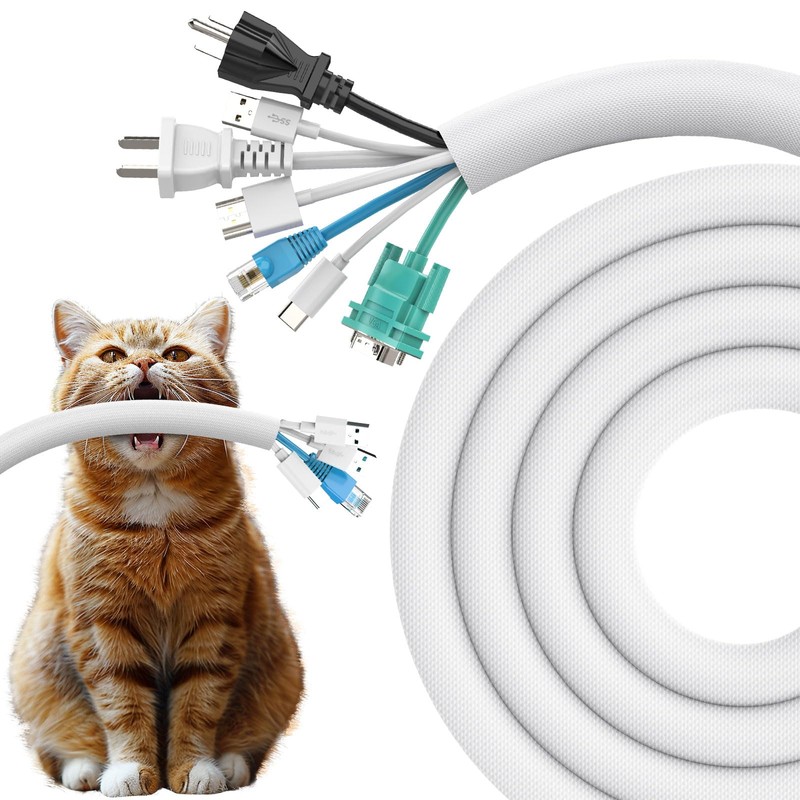REFLYING REFLYING Hund und Katze Kabelschutzgitter, Kabelschl?uche 3 Meter-25,4mm, Schutz von Kabeln vor dem Kauen von Haustieren, Expandable Geflochtene Selbstschlie?end Kabelschlauch, Wei?