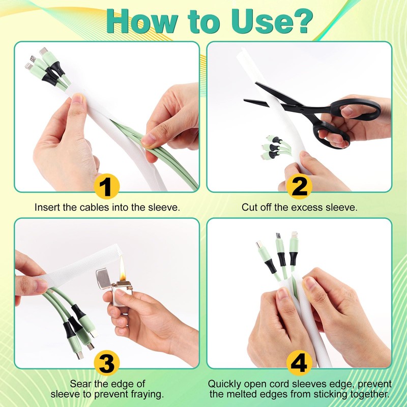 • Einfach zu bedienen: Unsere geflochtene Kabelhlle schlie?t sich bei der Installation von Kabeln von selbst und l?sst sich leicht entfernen oder hinzufgen.