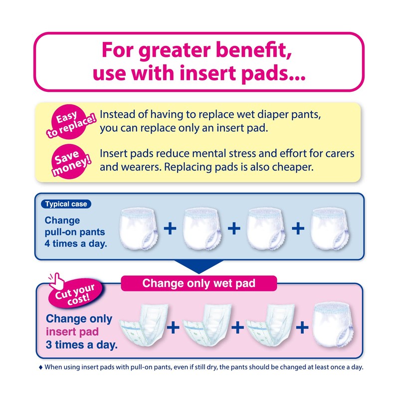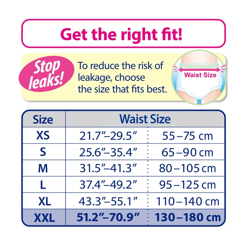 - Insertable Pads must be used with Pull-on Pants - Suitable for waist length between 95 - 125cm / 37.4 - 49.2 in