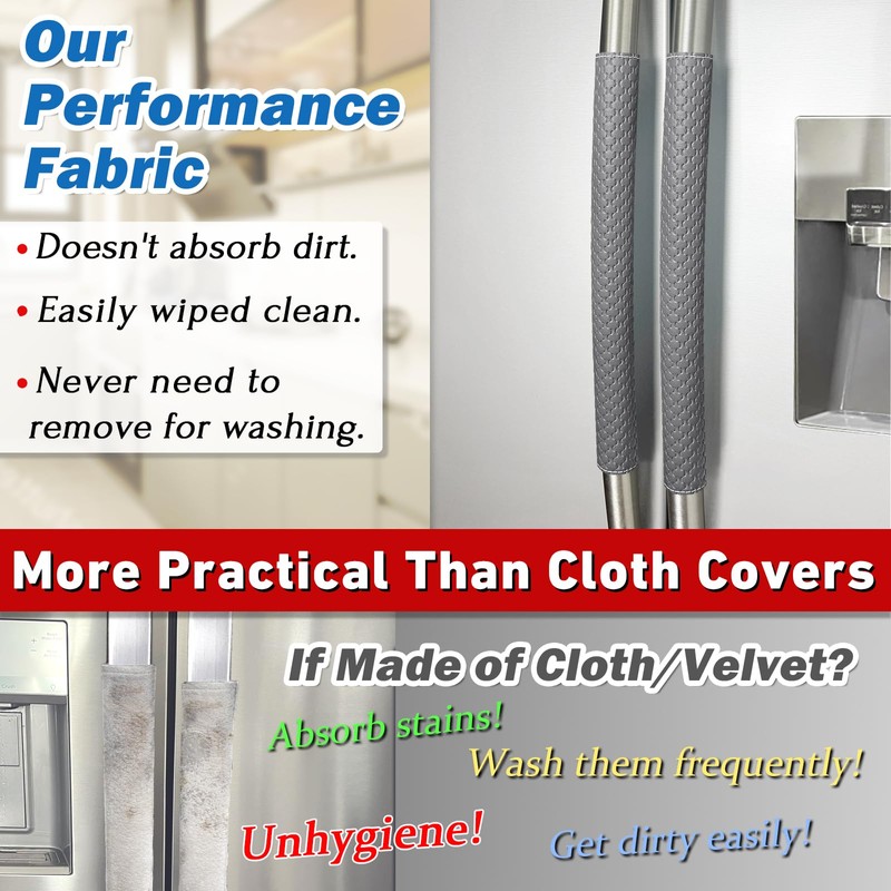- More Practical Than Cloth Cover - Our refrigerator door handle covers are made of performance fabric with excellent grip. Unlike velvet or cloth covers, our handle cover doesn't collect dirt, stains and water, and a simple wipe keeps them clean.