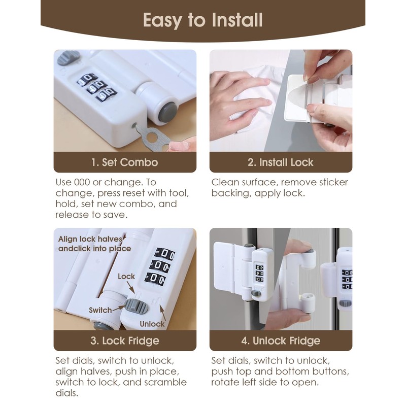- Strong Fridge Lock: Made from great materials and a quality combo lock, ensuring long-lasting protection for your curious son and daughter.