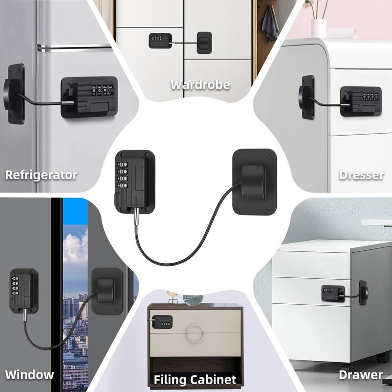 Keep Children Away from Refrigerator Hazards The New York Times published a news story about two children hid in the refrigerator and suffocated to death. Refrigerator locks can effectively prevent children from hiding in the refrigerator, and can prevent children and pets from finding inappropriate food in the refrigerator to eat. Keep Your Baby Safe And House Tidy! Are you looking for effective ways to protect your home when your baby has already started rummaging through it? Keep your little angel safe and healthy even when you're not in the room! You'll have peace of mind while your loved one explores your home. Safety locks are an effective way to keep curious children away from drawers and cabinets full of dangerous tools. This is a multipurpose product. Wide range of uses, including cabinets, drawers, doors and windows, refrigerators, ovens, freezers, toilet seats, refrigerators, washing machines, appliances, etc.