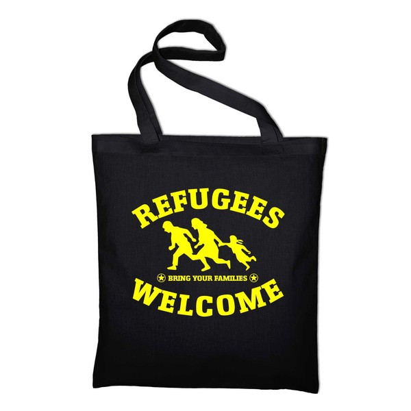 Refugees Welcome Jute Bag Bag Bag Cotton Bag, BLACK (Black) - styletex23tzbbag2ref1