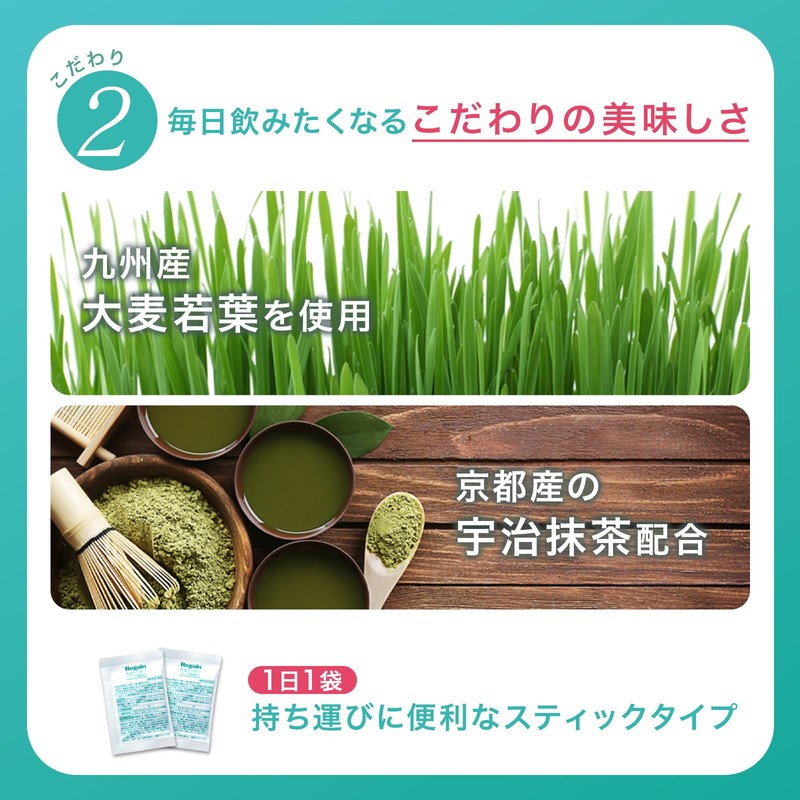 - ✅【宇治抹茶配合で口当たりよく、飲みやすくて続けやすい。】宇治抹茶を贅沢に配合。素材の風味を生かし、香り深く飲みやすい口当たりに仕上げました。飽きがこない味わいで、長く続けていただけるおいしさです。