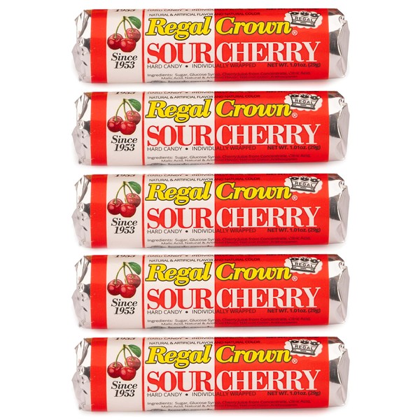 Regal Crown Roll Sour Cherry, 1.01 Ounce (Pack of 5), Sour Candy, The Hampton Candy Company