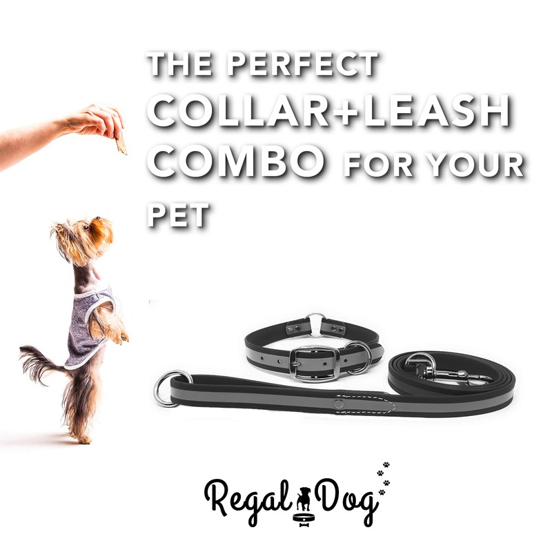 - ๐ฆ๐๐ ๐ฃ๐๐ฌ ๐๐๐ง๐๐๐๐ก๐ โ Give your dog some style with Regal Dog Productsโ cool dog collars and leashes! A 6โ ft. dog walking leash gets tangled in your dogโs feet and a 4โ ft. puppy lead is too short. Our research shows that 5โ ft. dog leash is the optimal length, maintaining a comfortable distance from your pet on your daily walk. Our Biothane collar and leash feature vinyl webbing with a waterproof coating and will never absorb moisture or catches fur so it stays dry and clean!