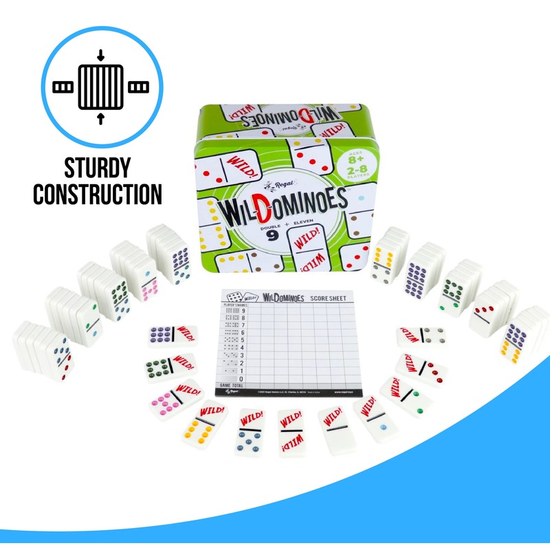 Regal Games – Wild Spinner Dominoes – Compatible with Spinner and Double 9 Dominoes - Fun Family-Friendly Dominoes Game – Includes Score Pad and Rules Sheet – Ideal for 2-8 Players Ages 8+