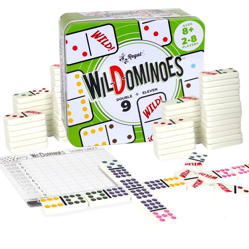 - WILD SPINNER DOMINOES - This Regal Game comes with 55 double nine dominoes plus 11 extra Wild! Dominoes for a total of 66 dominoes. This set is compatible with Spinner and Double 9 Dominoes for replacements