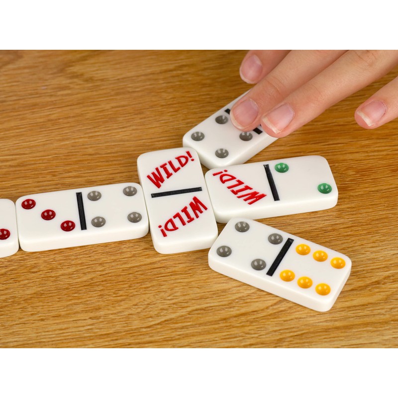 - TIMELESS WITH A TWIST - Be the first player to dispose of your dominoes in this classic game that comes with a Wild! twist.