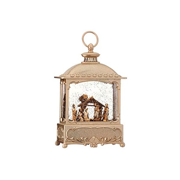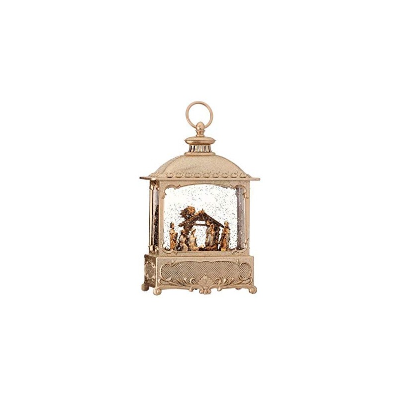 Regency International Nativity Square Lantern Globe, 12 inches, Champagne Gold, Led Lights, USB or Battery Operated with Timer