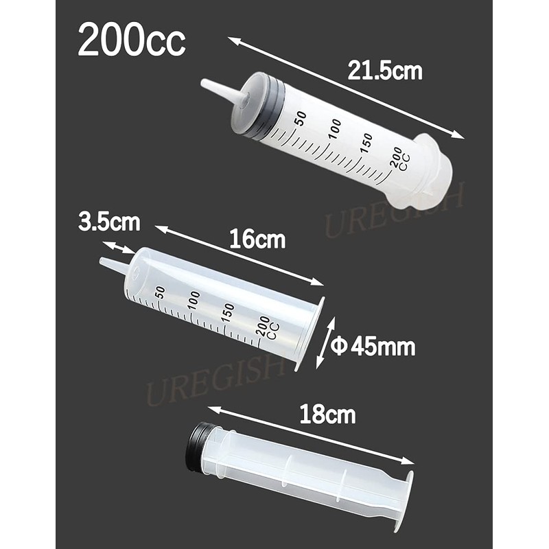 Regish Syringe Injector Syringe Plastic Large Capacity Pet Feeding Dosing Cleaning Ink Oil Measuring Injection 6.8 fl oz (200 ml)