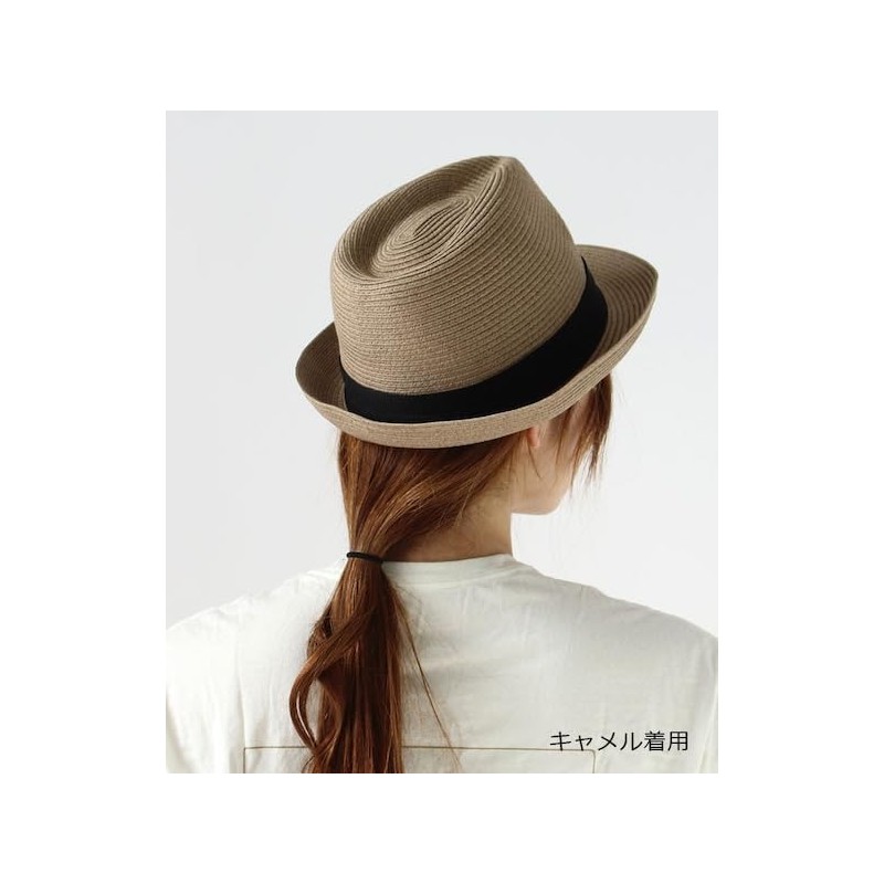 Regnuu Men's Foldable Straw Hat, Linu, Thin Knitting, Poly Braid Hat, Women's, Osaka, Store, Large Size, Spring, Summer, Spring and Summer, Camel, 56.0 cm