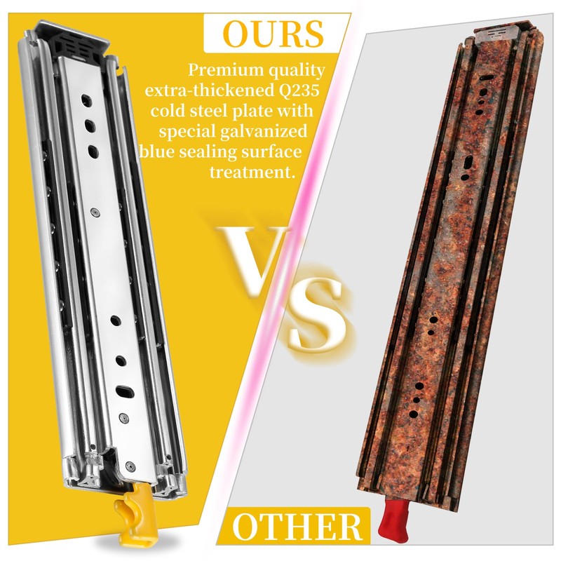 - 【Corrosion resistant and Anti-rust】 The rust resistance of our slides is superior to the others because of the special galvanized blue sealing surface treatment.