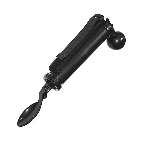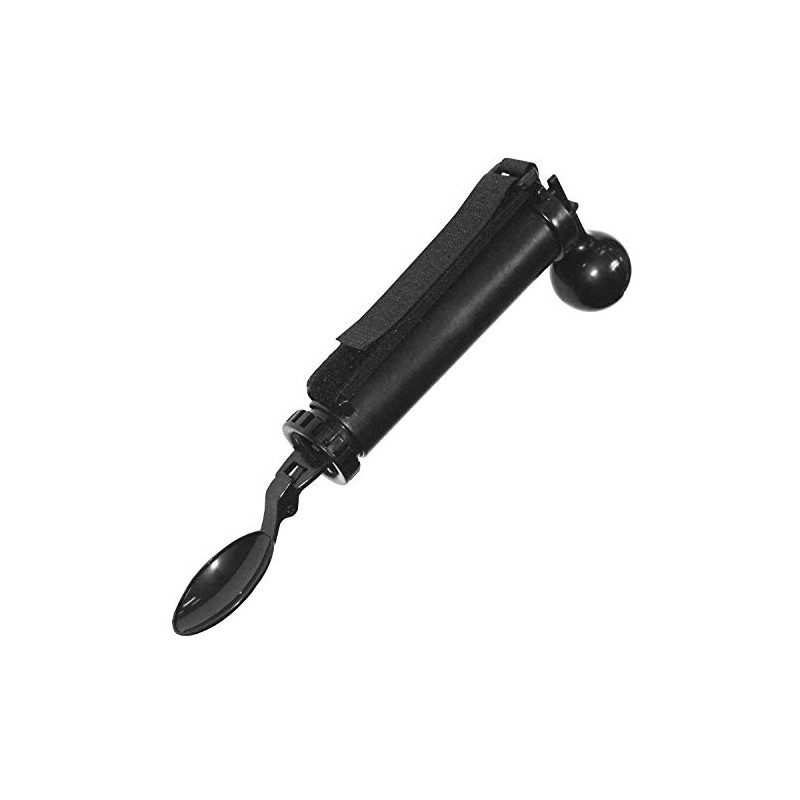 - Unique utensil is designed with a counter weight system to help the spoon stay steadily in place when in use