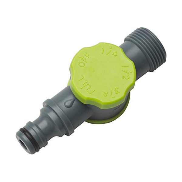 • Applications: adjust the water release for drip and bead hoses or adjust the range of sprinklers for garden hoses