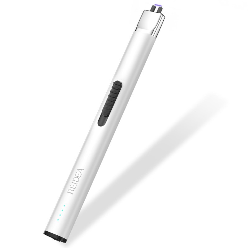 REIDEA Lighter R1 Flat Electronic Candle Lighter, Windproof Flameless USB Rechargeable Arc Lighter with Safe Button and Power Indicator for Candle, BBQ and Fireworks, White