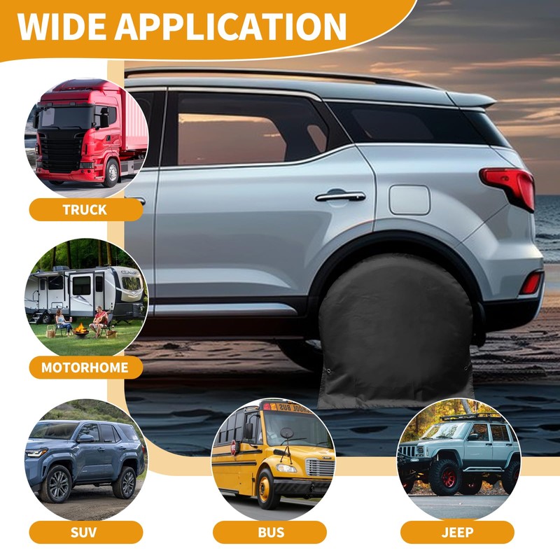 - 🚘【Funktionelle Reifenabdeckungen】Diese ersatzradabdeckungen können dazu beitragen, vorzeitige Risse in den Seitenwänden zu verhindern, die zu Reifenplatzern auf der Straße führen können, wodurch die Lebensdauer Ihrer Reifen verlängert wird und Rad und Reifen vor Staub, Korrosion, Trockenfäule, Schnee und UV-Strahlung geschützt werden und hohe Temperatur