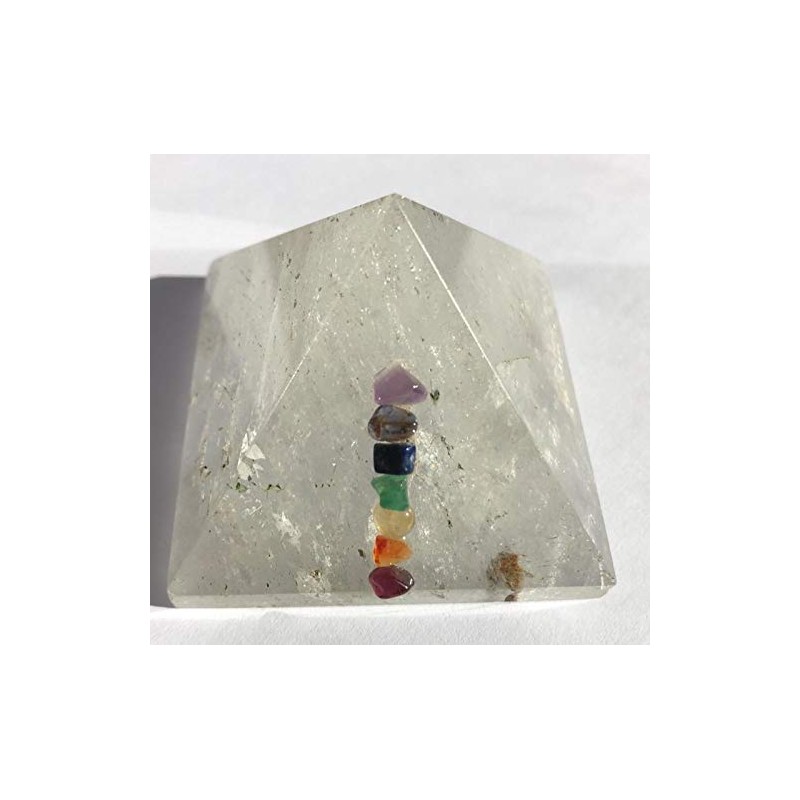 Reiki Healing Energy Charged Large Clear Quartz Reiki Crystal Pyramid with Chakra Gems (5.2 x 5.2 x 5.2cm))