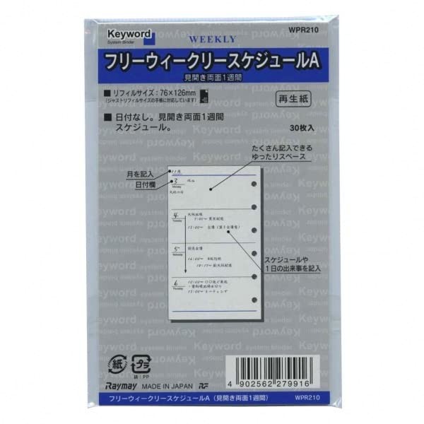 Reimei Fujii WPR210 Keyword Personal Organizer Refill, Free Weekly A, Pocket Size