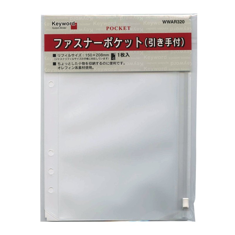 Reimei Fujii WWAR320 Keyword Personal Organizer Refill, Zipper Pocket, A5 Size
