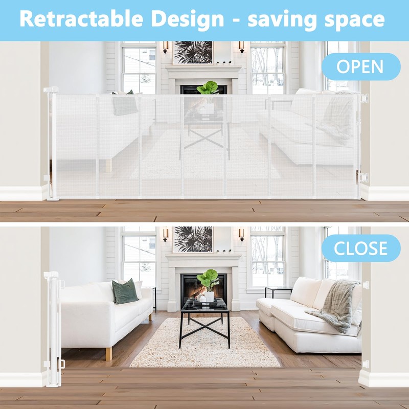 Retractable Gate : the gate can retractable when it's not in use, saving space and maintaining the room's aesthetics. The gate is 35" tall , suitable for 0-100" wide openings.