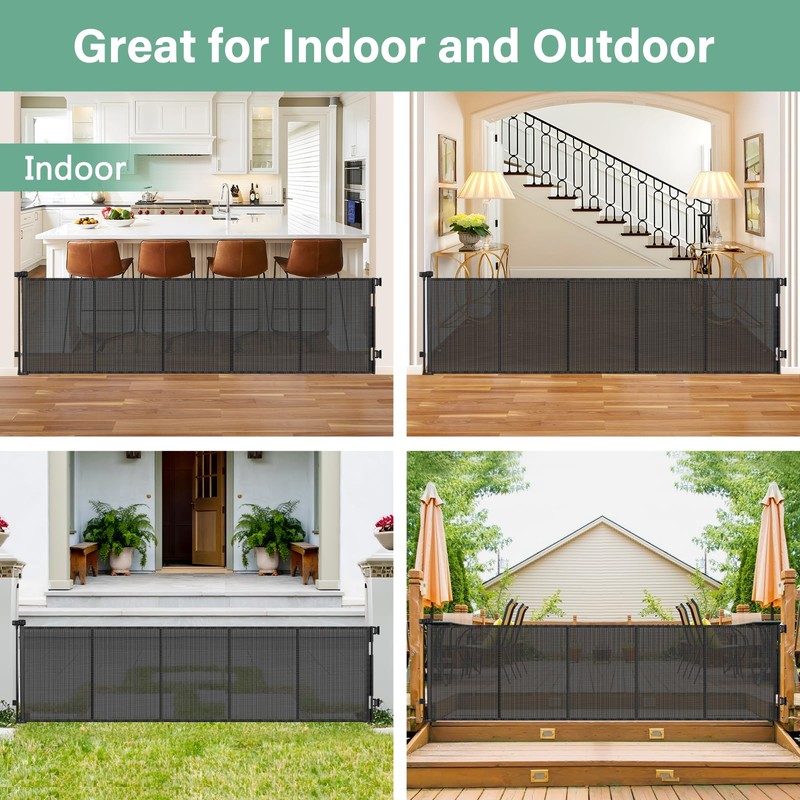- Suitable for Toddlers and Small Dogs : the mesh of the gate is soft, scratch-resistant and anti-climbing, preventing your children from climbing the retractable dog gate and pets from tearing the retractable pet gate. Let your children and pets play in a safe environment.