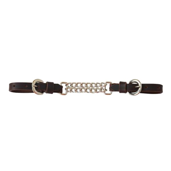 Reinsman Curb Chain Pony Size in Latigo This pony sized double curb chain is the perfect size for your pony. It will conform to the jaw to distribute pressure as the rider picks up on the reins. Double-sided heel buckles make adjusting to the correct length quick and easy. Color: Latigo